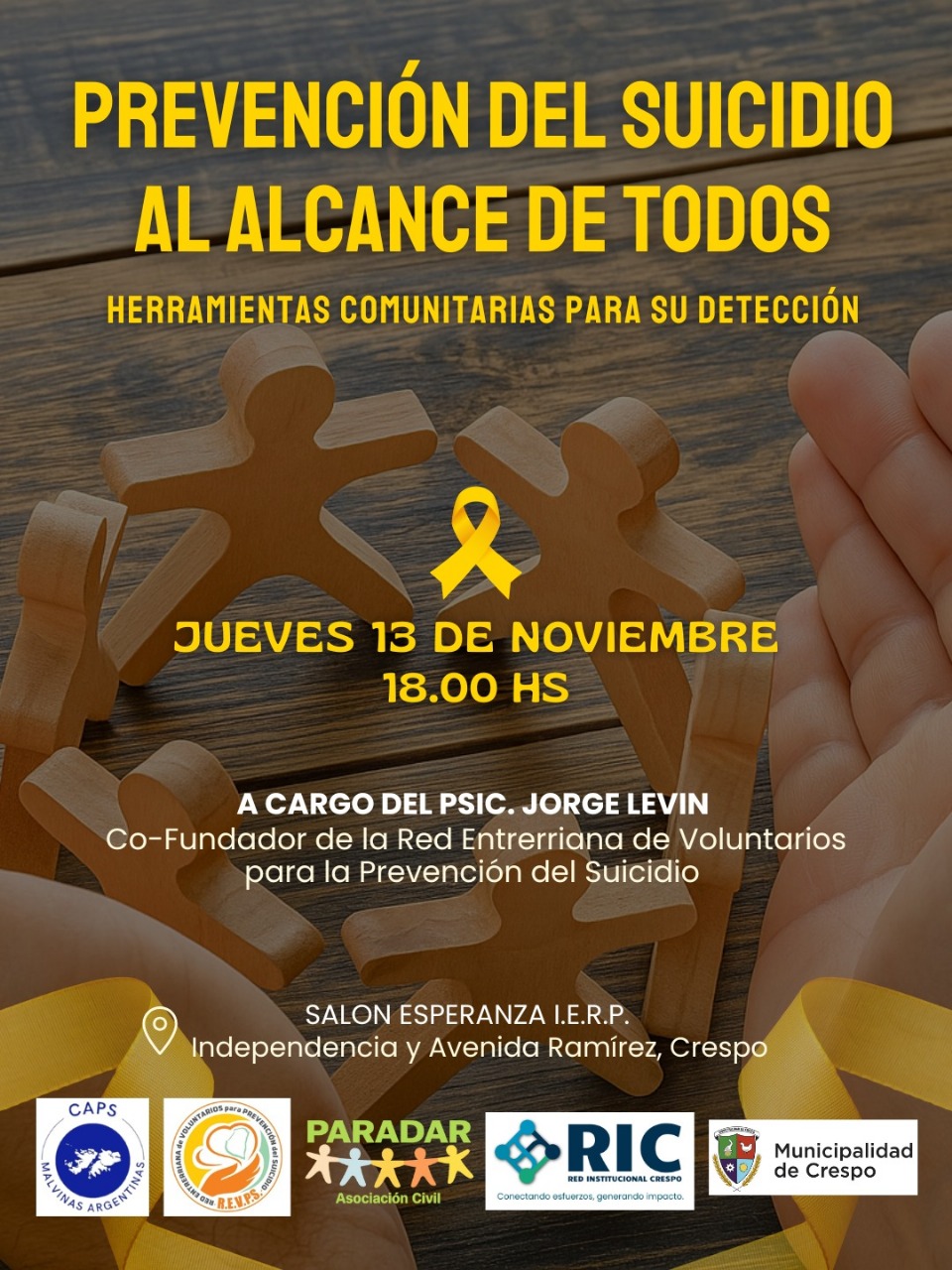 El psicólogo Jorge Levin ofrecerá una charla denominada ‘Prevención del Suicidio al alcance de todos’. La disertación ofrecerá herramientas comunitarias para su detección.